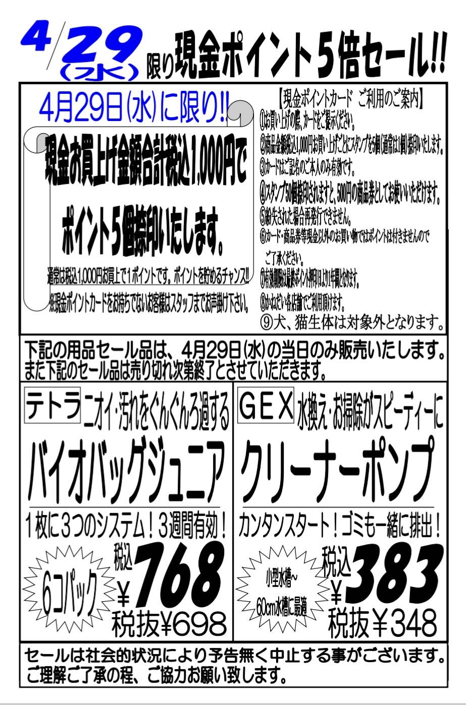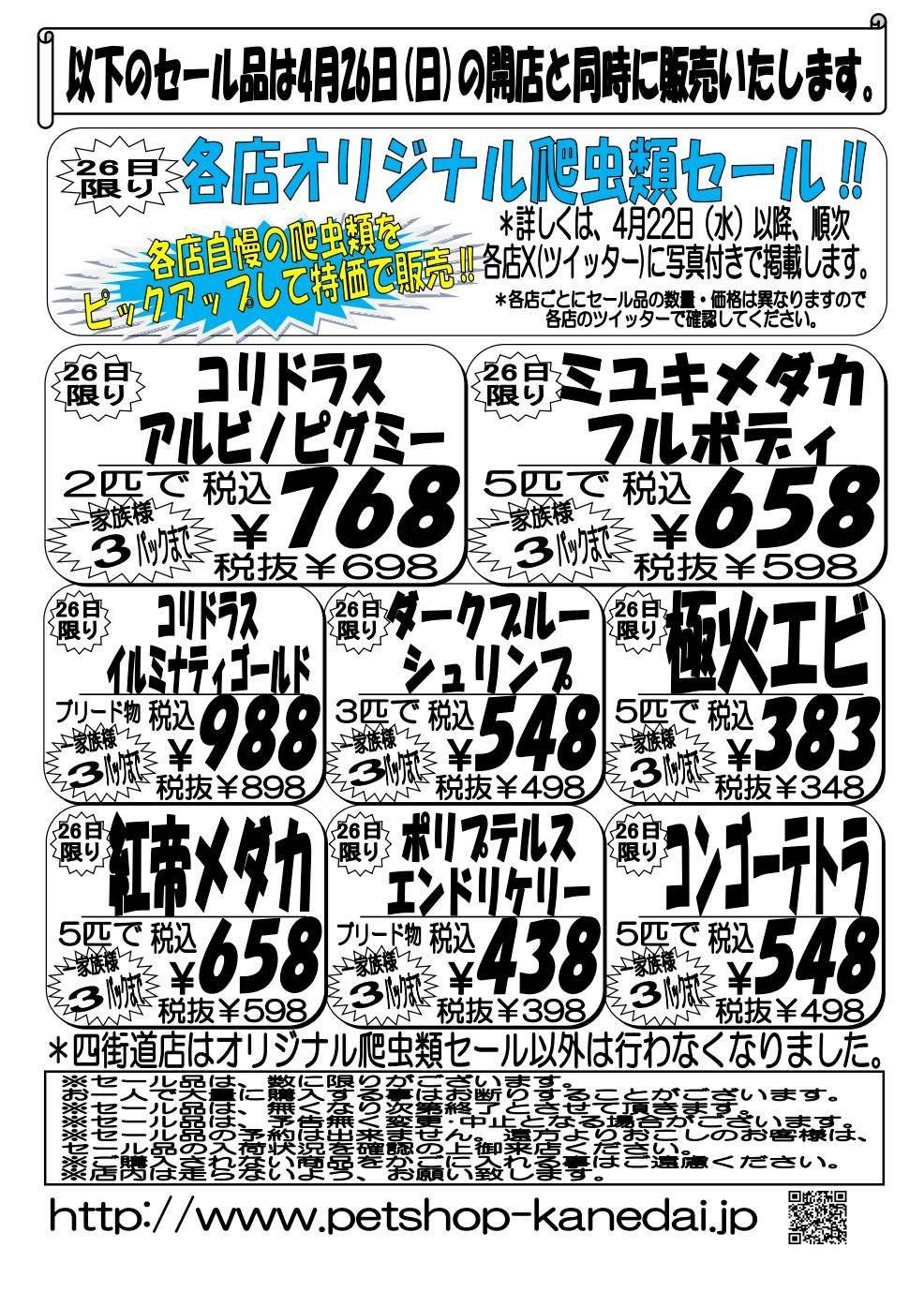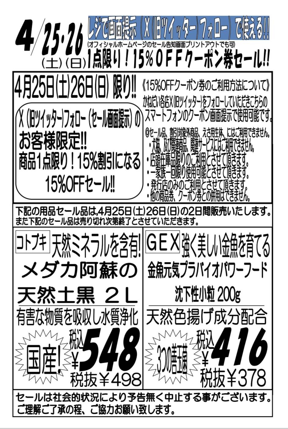 4月25・26日かねだい全店共通SALE‼🦉
