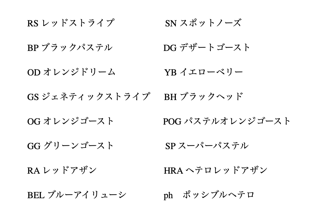 ボールパイソン 当店で使用している略称NEW!!